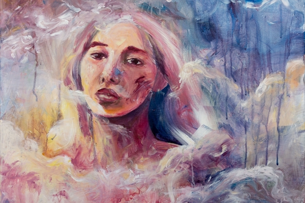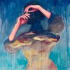 "Clouded Mind" poster by Anna-Carina Weiss. A mesmerizing blend of reality and abstraction, this artwork captures a woman's ethereal presence amidst swirling clouds. The soft colors dance across the canvas, creating a dreamlike atmosphere that invites introspection. Fluid paint and fingerpainting techniques bring a tactile quality, blurring the lines between the real and the imagined. It's like a visual whisper of thoughts drifting through the mind—perfect for those who appreciate the beauty of dreams and the complexity of emotions.
