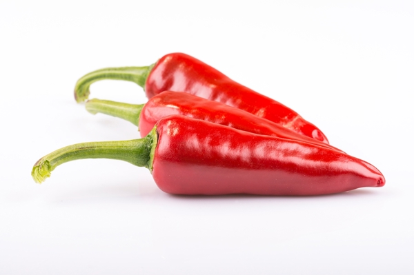 "Close-up of red hot peppers against a white background"
