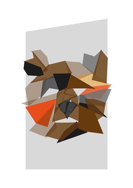 "The sleeping bear" poster by Immo Balboa. A playful dance of shapes and colors, this artwork captures the essence of a bear in a modern, abstract form. With a mix of browns, grays, and bold reds, it’s like a visual puzzle that invites the eye to explore. The sharp angles and fluid lines create a sense of movement, making it perfect for a child’s room or any space that craves a touch of whimsy. This piece is not just art; it’s a conversation starter.