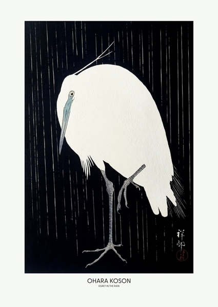"Garza bajo la lluvia" poster de Japanese Masters. Un blanco herón que parece flotar en la oscuridad, con la lluvia dibujada en líneas casi digitales, como un glitch natural. La simplicidad japonesa se reinventa aquí: un contraste brutal y elegante que atrapa sin esfuerzo. Es como si la calma se hiciera tangible, ese instante zen en medio del caos meteorológico. Ideal para espacios que buscan ese toque sereno, con un guiño vintage que nunca pasa de moda. Sí, es arte que habla sin palabras.
