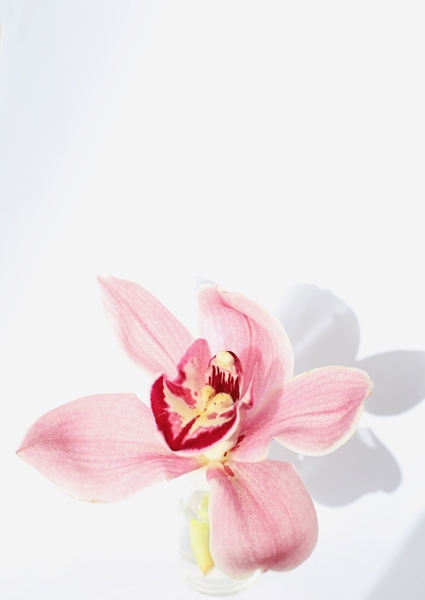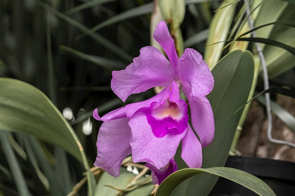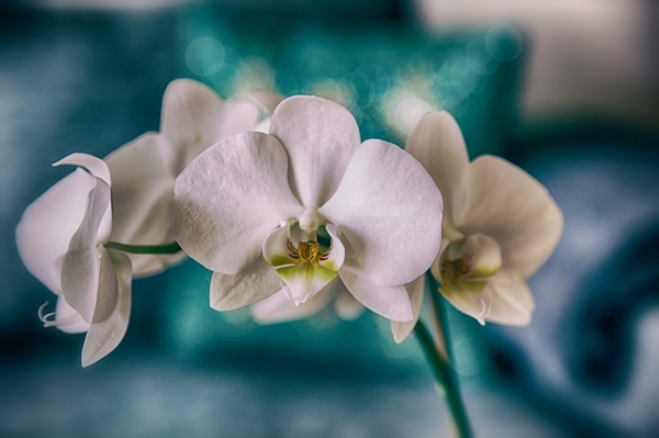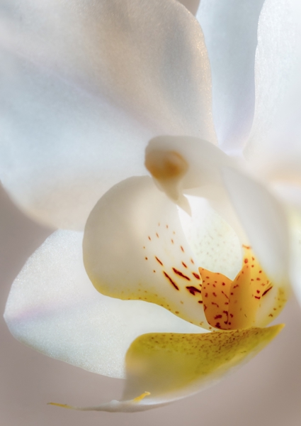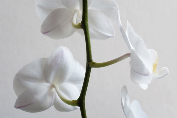 "Closeup of a flowering orchid (Phalaenopsis 'Pulsation')."