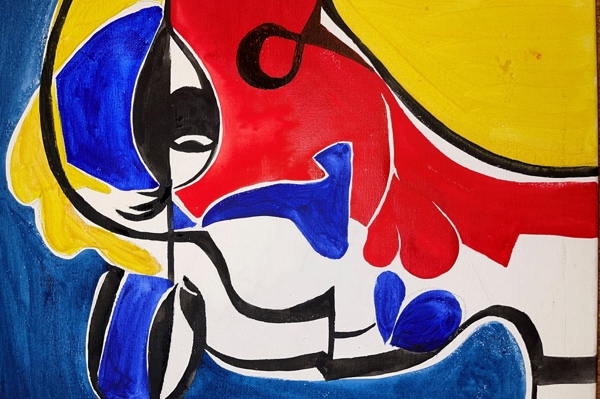 "Rakkaus " poster tekijältä Mladena Radovanovic. Love tempaa mukaansa värien ja muotojen villiin pyörteeseen, jossa kaksi kasvoa sekoittuvat yhdeksi rytmiksi. Punainen, sininen ja keltainen tanssivat yhdessä mustien viivojen kanssa, jotka kutovat tarinaa yhteydestä ja tunteesta. Tämä abstrakti teos ei anna suoraa vastausta – se kutsuu pysähtymään ja uppoutumaan hetkeen, jossa rakkaus on yhtä aikaa kaoottista ja kaunista. Piristysruiske moderniin sisustukseen, joka puhuu suoraan tunteiden kielellä.