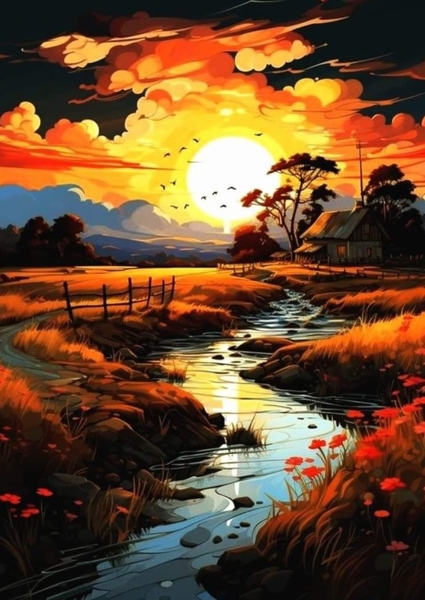 "As the sun sets in the western horizon, the beauty of nature unfolds in a mesmerizing way. The tranquil river, the sturdy trees, and the golden sky seem to invite us to pause and enjoy the peace. Every passing second is a peerless work of nature's art"
