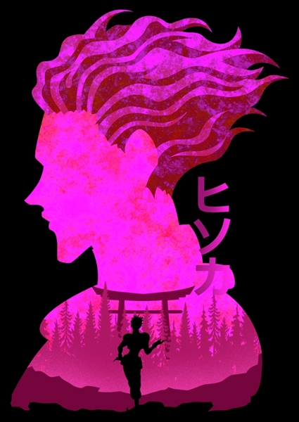 "Hisoka Hunter x Hunter" poster de My Kido. Plonge dans l’univers déjanté de Hisoka avec ce portrait en silhouette rose fluo qui claque. Sa chevelure en flammes hypnotiques défie la gravité, tandis qu’au creux de son profil, une forêt mystique et un torii japonais plantent le décor d’une chasse énigmatique. Cette pièce joue avec l’espace négatif façon ninja de l’ombre – c’est plus qu’un simple visuel, c’est une invitation à l’aventure, un trip manga qui fait vibrer la fibre otaku. Bref, un must-have pour ceux qui aiment quand ça pulse fort et que ça raconte une histoire.