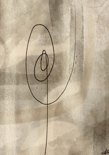 "Beige abstrait" poster de Ariana Krasniqi-Leitert. Une spirale fine trace son chemin, quasi hypnotique, dans un univers de beiges doux et veloutés. Le fond, à la fois flou et texturé, joue avec les nuances de brun et de noir, comme un vieux film en sépia rechargé au minimalisme. C’est calme, presque méditatif, mais il y a ce petit twist inattendu – le trait noir qui se déploie, simple mais déterminé, comme un clin d’œil discret au chaos intérieur. Parfait pour mettre un soupçon de zen urbain sans en faire trop.