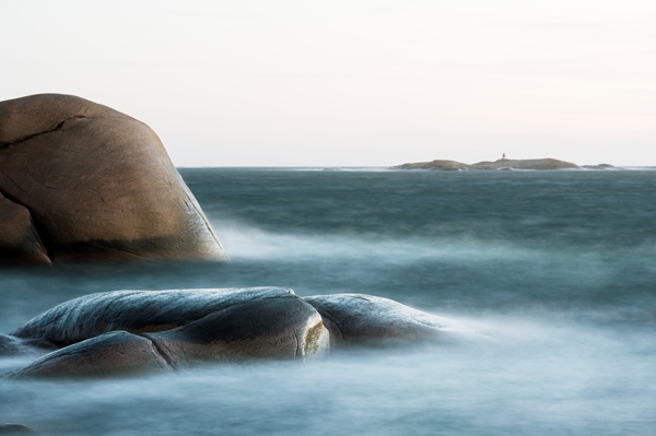 "The picture was taken at dusk when it was storming the most at the far end of the cliffs. A slow shutter speed made the water look calm and soft."