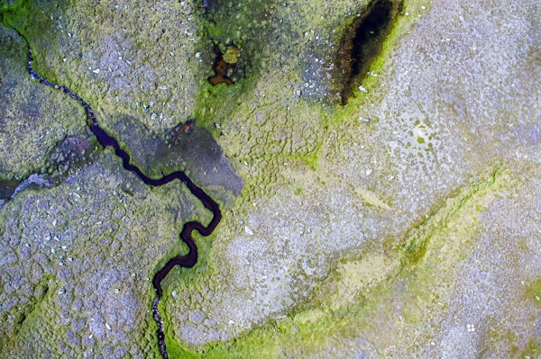 "Modèles de montagne" poster de nordicmode. Un ruisseau sinueux trace sa voie noire au cœur d’un paysage sauvage et rugueux, capturé ici en vue aérienne. Entre verts éclatants et textures terreuses, la nature suédoise se révèle brute, presque abstraite. Ce patchwork organique joue avec les formes, comme un remix visuel où chaque courbe invite à s’égarer. Une invitation à plonger dans la beauté brute et mystérieuse de Norrland – loin du bruit, mais pas du tout ennuyeux.