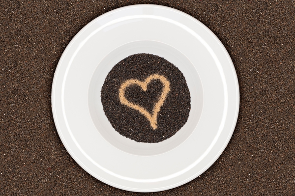 "This heart was depicted with light sand on dark sand from the island of La Palma on a plate. A sign of love presented on a plate."