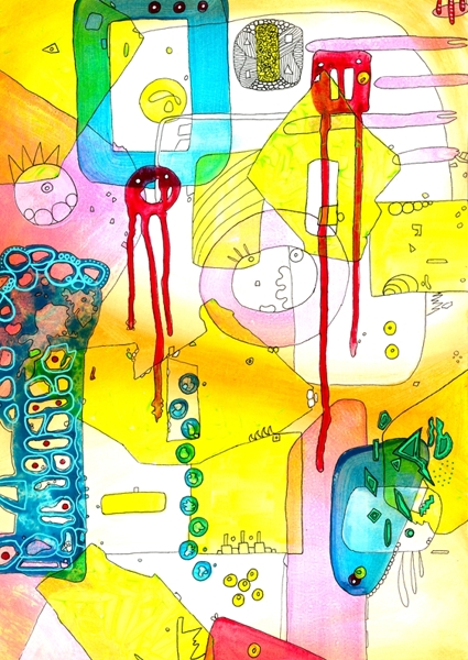 " Själsresa" poster de Sven Weber. Un feu d’artifice abstrait où le jaune solaire s’impose, éclaboussé de touches bleues et de rouges qui coulent comme un secret un peu sauvage. Des formes géométriques s’entrelacent, oscillant entre chaos contrôlé et poésie désinvolte, un peu comme un graffiti digital en pleine rêverie. Cette pièce, c’est une balade intérieure – un délire coloré qui vous attrape et vous emmène ailleurs, vers un ailleurs vibrant et imprévisible. Bref, un trip visuel qui ne laisse pas indifférent.