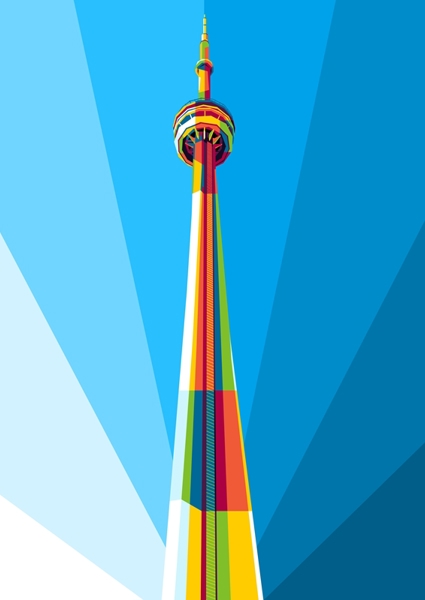 "CN Tower Canada Pop Art made without curved shapes and a combination of many colors to form a cute, elegant, cool and of course colorful CN Tower object."