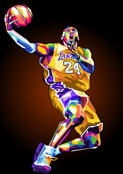 "Légende du panier" poster de Shichiro Ken. Explosion de couleurs et de mouvement, cette œuvre capte un instant mythique du basket, slam dunk en plein vol. Le joueur, vêtu du mythique maillot jaune des Lakers, se découpe en formes géométriques vives, presque digitales. Ça pulse, ça claque. Une vibe pop art qui claque contre le fond sombre, comme un éclair dans la nuit. Un hommage vibrant à la légende, aux fans et à l’énergie brute du sport. Bref, ça envoie du lourd.