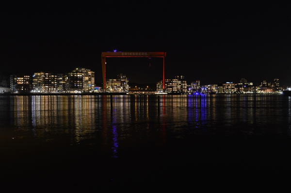 "Eriksberg de nuit (Göteborg)." poster de Fernando Delgado Lopes. La nuit tombe sur Eriksberg et voilà que le port s’illumine comme un écran géant pixelisé. Cette grue rouge – presque un monument urbain – encadre un patchwork de lumières qui se reflètent en vrac sur l’eau, comme un jeu vidéo glitché mais chic. L’architecture moderne joue les stars discrètes, pendant que la ville respire un rythme calme et électrique. Un paysage urbain qui ne dort jamais, et qui vous invite à plonger dans son ambiance. Pas mal, non ?