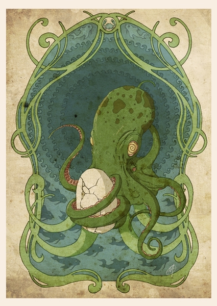 "A squid squeezing an egg a bit too hard"