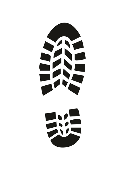 "A black and white poster of the bottom of a shoe. Simple and stylish."