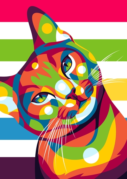 "The Cat Stare Pop Art made with curved shapes and a combination of many colors to form a cute, elegant, cool and of course colorful Cat Portrait object."