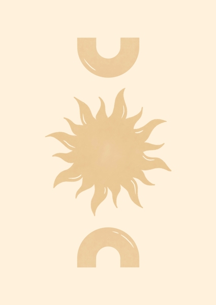 "Le Soleil" poster de Barlena. Un soleil stylisé qui ne se contente pas de briller, mais qui semble danser entre deux arches minimalistes. Cette illustration joue la carte de la simplicité avec des formes épurées et des tons doux, presque comme un filtre vintage pour une vibe boho relax. Le genre de pièce qui injecte une dose de bonne humeur et de chaleur dans n’importe quel intérieur. Parfait pour ceux qui veulent un petit coup de soleil quotidien, sans chichi. Mais bon… qui n’en veut pas ?