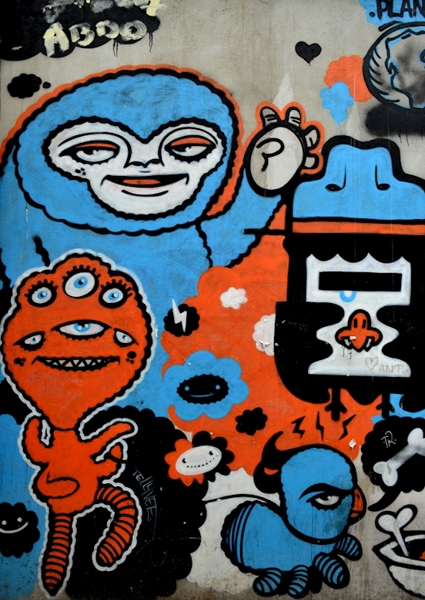 "Graffiti à Bruxelles" poster de John Stefansson. Un délire visuel sorti tout droit des rues de Bruxelles. Ce graffiti mêle un bestiaire improbable – un monstre orange à trois yeux, une créature bleue au sourire narquois, et un oiseau à l’air blasé – tous en mode cartoon psychédélique. Le tout baigne dans un cocktail de bleu, orange et noir, ponctué de petits détails comme ce cœur discret. C’est le genre d’œuvre qui te chuchote une histoire urbaine pleine de second degré et de good vibes. Un vrai shoot d’énergie pop en plein street art belge.