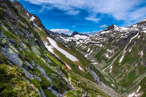 "The Dorfersee lies in the valley. The lake gave the valley its name, Dorfertal. The hiking trail from the Granatspitz Group leads down to the Dorfersee. Even in July, when the picture was taken, the hiking trail was impassable a little later. There were still fields of snow that were too dangerous t"