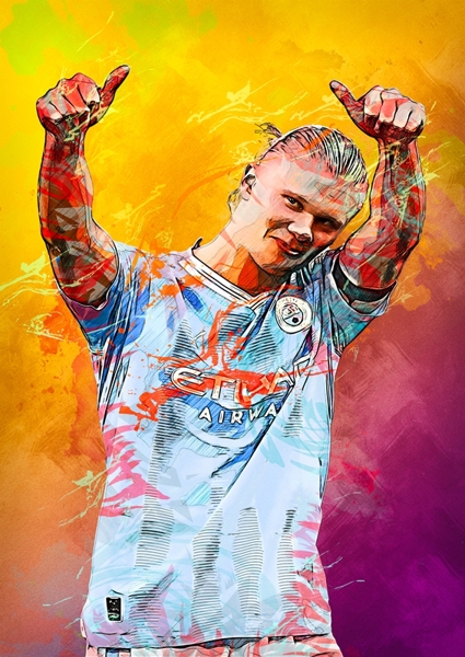 "Erling Haaland" Art Print, készítette: abdur rauf. Különböző méretekben elérhető, poszterként vagy keretezett Fine Art Printként. Egy stílusos kerettel kiegészítve ez az alkotás tökéletesen feldobja a saját művészeti galériádat!