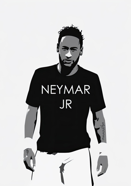 "Neymar Júnior – Párizs" Art Print, készítette: Fußball Total. Különböző méretekben elérhető, poszterként vagy keretezett Fine Art Printként. Egy stílusos kerettel kiegészítve ez az alkotás tökéletesen feldobja a saját művészeti galériádat!