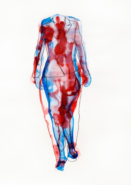 "This abstract watercolor piece captures the essence of human silhouette and movement. Ideal for minimalist or modern interiors, it adds a touch of mystery and elegance. Perfect for living rooms or creative spaces seeking to evoke thought and emotion."