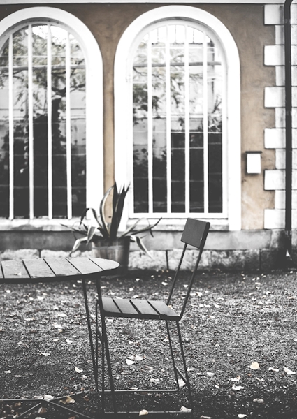 "On a photo walk I discovered these two buildings that meet each other with their acute angles like two people. The play of colors then gave the two houses an extra shot of elegance. "