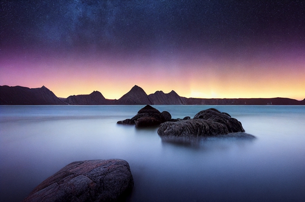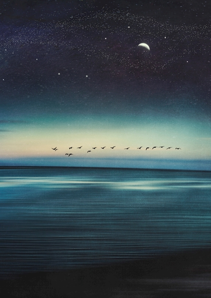 "Abstract seascape with night sky - manipulated photograph"