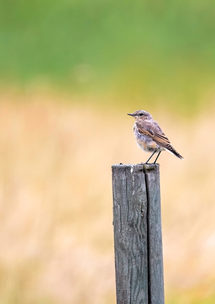 "Culzio, yearling" poster di Niklas Grenliden. Un pulcino di sterpazzola nordica si posa con disinvoltura su un palo di legno consumato dal tempo. Le sue piume soffici e il piccolo sguardo curioso sembrano catturare un attimo di pura innocenza, mentre sullo sfondo sfocato si stende un mare di tonalità calde e dorate. Un quadro che celebra la semplicità della natura, perfetto per chi ama portare un tocco di vita selvatica dentro casa. Ma dai, è quasi come sentirne il cinguettio.