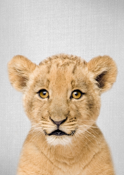 "Cucciolo di leone" poster di Gal Pittel. Un cucciolo di leone che ti fissa con occhi grandi e curiosi, quasi a chiederti “E adesso?”. Il pelo morbido e la posa frontale catturano un’innocenza selvaggia, un mix perfetto tra tenerezza e forza nascente. Questo ritratto moderno porta un tocco di natura pura nella stanza, ideale per chi vuole un dettaglio giocoso e autentico senza esagerare. Safari a portata di sguardo.