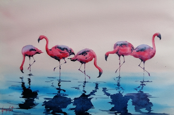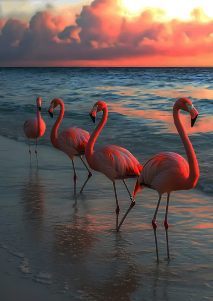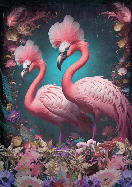 "Explore unique and colorful artwork featuring these elegant creatures."