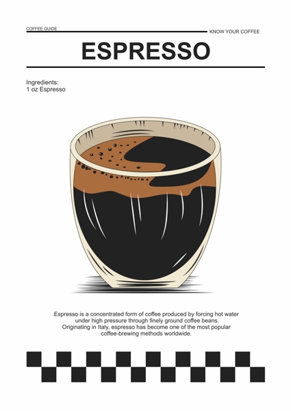 "Espresso Martini drink with recepie, painted with aquarelle"