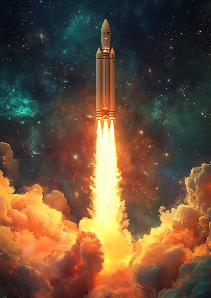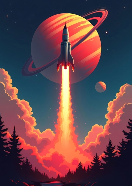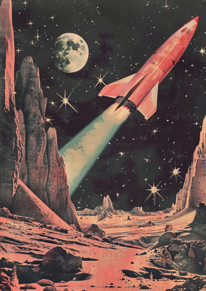Stampa d'arte "Il razzo e la luna #2883413" di Nibera. Disponibile in diverse dimensioni come poster o stampe d'arte di pregio incorniciate. Accoppiata con una cornice, questa opera d'arte spicca veramente nella tua personale galleria d'arte!