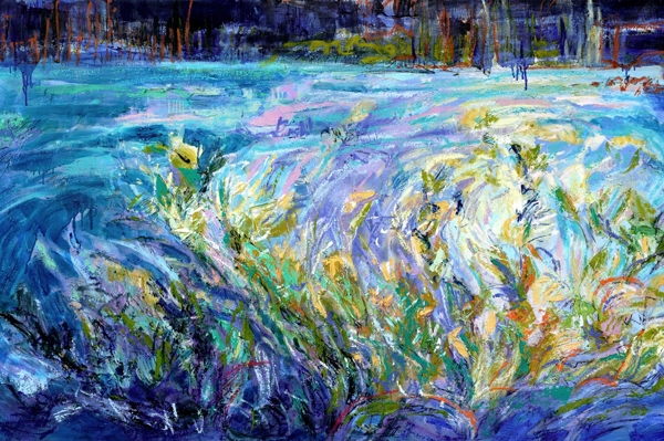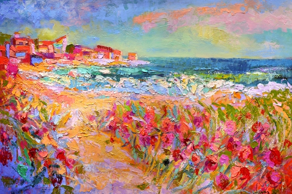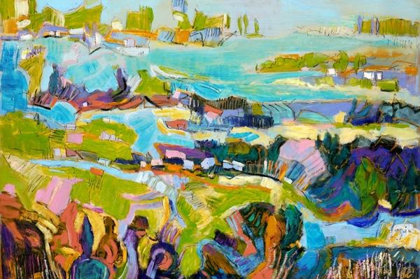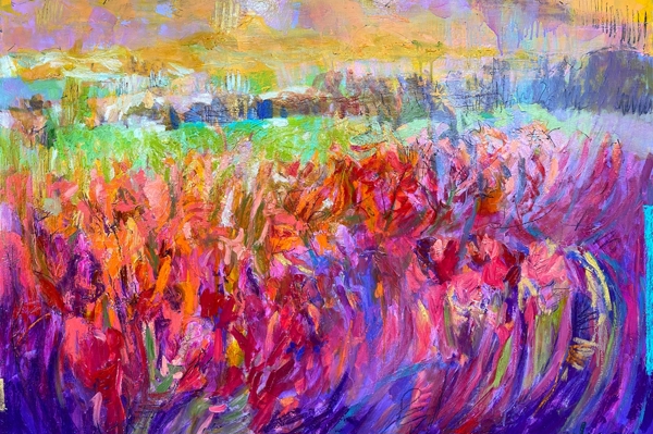 "This vibrant abstract landscape captures the essence of nature's energy, using bold colors and dynamic textures. Perfect for modern interiors, it adds a pop of color to minimalist spaces or complements eclectic decor. Display it in living rooms or offices for an inspiring focal point."