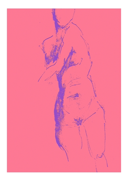 Donna nuda in schizzo su sfondo rosa