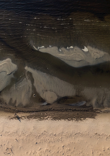 "Spiaggia di Båstad" poster di Kesselman. Un volo sopra Båstad Beach in inverno, dove sabbia e acqua si mescolano in una danza silenziosa dai toni soft e ovattati. La riva si curva con eleganza, svelando trame intricate che sembrano dipinte da un artista invisibile. Un momento sospeso, quasi ipnotico, che trasmette una calma rarefatta e un’atmosfera quasi surreale. Perfetto per chi cerca un angolo di pace nordica da portare in casa.