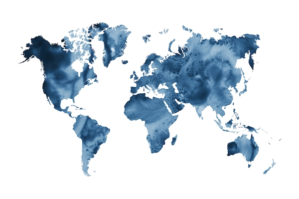 "Mappa del mondo blu" poster di Nouveau Prints. Questa mappa del mondo in acquerello blu navy sembra un invito silenzioso a perdersi nei dettagli liquidi del pianeta. Le sfumature indaco si mescolano come onde, trasformando confini e continenti in qualcosa di più fluido, quasi onirico. Perfetta per chi ama il minimalismo con un tocco artistico, porta una ventata nordica e un mood da esploratore moderno. Un pezzo che ti fa venire voglia di prendere un volo, o almeno di sognarlo.