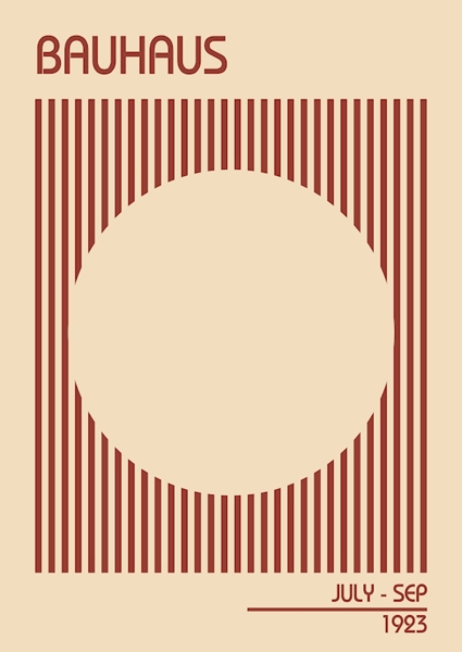"Bauhaus Beige Poster" poster di William Gustafsson. Un gioco di righe verticali rosso mattone che, con un colpo di genio, disegnano un cerchio vuoto al centro su sfondo beige caldo. Minimalismo che parla chiaro, senza fronzoli, ma con un richiamo deciso all’epoca d’oro del Bauhaus. Quasi un invito a rallentare e guardare meglio, sentendo l’eco di Berlino o Monaco nel 1923. Perfetto per chi ama l’arte che fa pensare, senza prendersi troppo sul serio. Un pezzo che trasforma ogni parete in un piccolo manifesto di stile e storia.