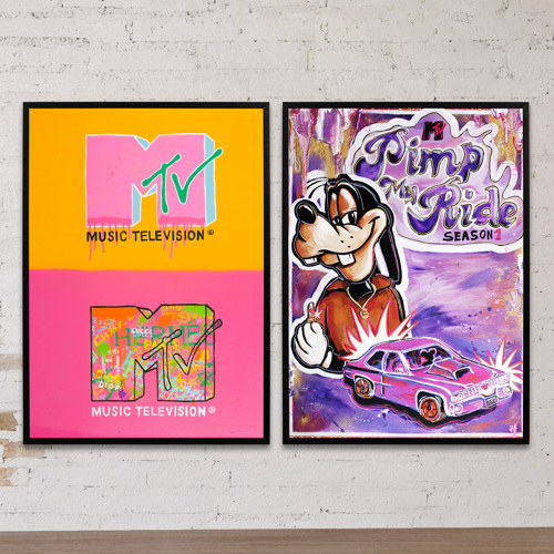 Throwback naar de gloriedagen van MTV! De muziek, het logo en de iconische shows zoals Pimp My ride. Beleef die nostalgische gloriedagen opnieuw met dit Retro-paar. Een pop art versie van Pimp My Ride en een geweldig eerbetoon aan het iconische logo. Laat deze goede vibes los op je muren!