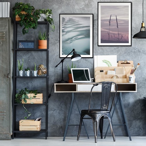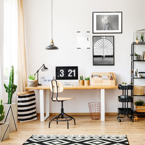 Voeg een extra vleugje klasse en inspiratie toe aan de muur van je thuiskantoor. Dit zwart-wit motief geeft een extra touch zonder af te leiden.