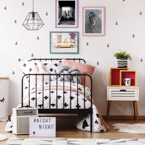 Maak de slaapkamer van je kind compleet met deze prachtige fotowand in echt Scandinavisch design. Laat je kind heerlijk wegdromen dankzij de zalige sfeer die deze muurkunst creëert.