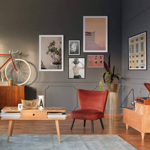 Voel je je een beetje overweldigd door de diepte van Printler's online kunstgalerij? Niet zeker welke kunststijlen of formaten je moet combineren? We hebben je gedekt met onze geweldige kant-en-klare fotowanden. Laat je inspireren door de onderstaande voorbeelden of koop misschien gewoon jouw perfecte kant-en-klare match. Denk niet aan fotowanden als slechts een verzameling lijsten, zie het als een mozaïek van je passies, interesses en inspiratie. Zie het als een artistieke uitbreiding van jezelf.