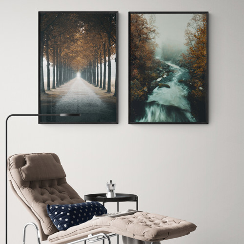 Dit is het signaal om eindelijk dat stijlvolle paar posters aan je muur toe te voegen. Waarom deze? Kijk naar de harmonie van de kleuren, het golvende lijnwerk dat dromen inspireert. De echte vraag is: waarom niet?