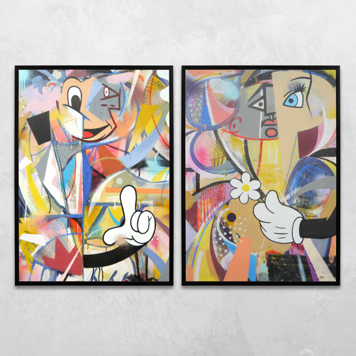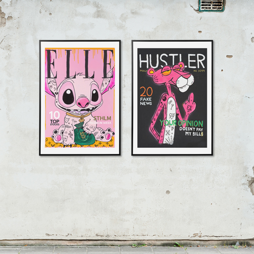 Een spetterend duo! De Pink Panther en (roze) Stitch houden van de schijnwerpers en wij houden van hen. Als je de kunstenaar Mikael Lindgren nog niet kent, dan zal je hem vanaf nu nooit meer vergeten - zijn wilde spel met kleuren, vormen en gevestigde merken laat niemand onverschillig.