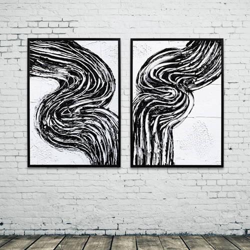 Dubbel zo mooi! 🙌🏽 De abstracte golven van Sofia Larsson creëren leven en dynamiek. Zij aan zij. Draai ze in de richting waarvan jij denkt dat het beste is, want niets is correct of fout met zo'n geweldige kunstafdrukken.