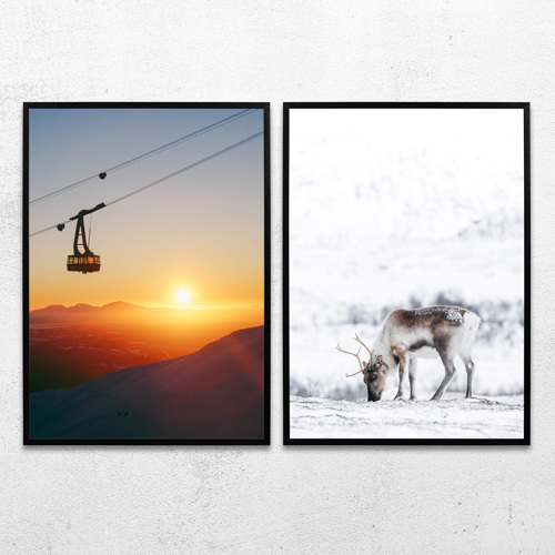Verwelkom deze winterse sferen in je huis en droom jezelf weg naar het winterwonderland van Lapland met deze prachtige combinatie fotografie prints.