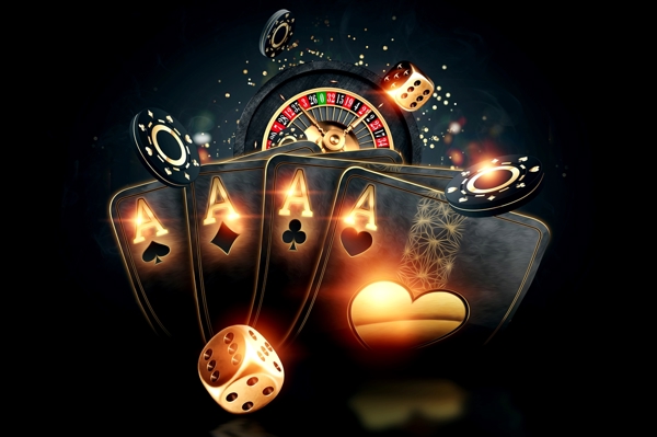 "A beautiful casino image with four aces, poker chips and dice"