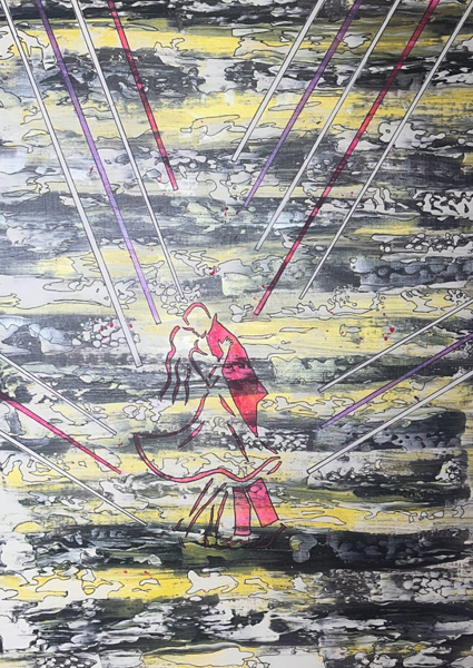 "Ik mis je" poster door The Painted Canvas - Art by Anna. Een dansend paar in een wereld vol contrast – felrood tegen een chaotisch, toch sfeervol palet van geel en zwart. Grafische lijnen schieten als vonken door het beeld, alsof liefde zelf energie uitstraalt. Het abstracte, bijna cartoonachtige decor brengt een speelse vibe, terwijl de silhouetten een intieme, bijna nostalgische connectie uitstralen. Perfect voor wie houdt van kunst met een knipoog en een vleugje magie. Maar goed… liefde blijft altijd het beste kunstwerk.