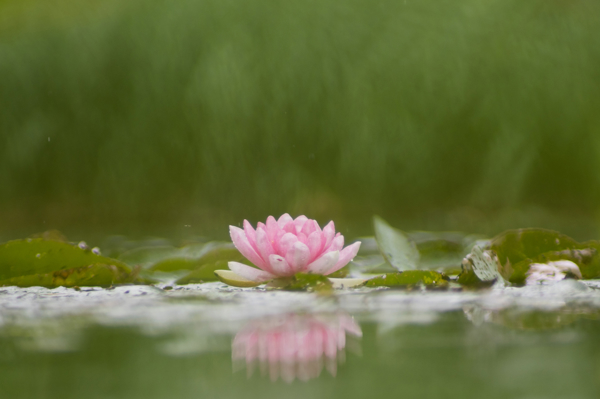 "Toen ik afgelopen zomer een wandeling maakte in het nabijgelegen Maximapark in Utrecht, viel het me op dat er prachtige waterlelies in het water bloeiden. Omdat het weer een beetje regenachtig was heb ik geprobeerd de camera zo laag mogelijk te krijgen zonder dat het nat zou worden. Hierdoor is de weerspiegeling in het water meer symmetrisch. "