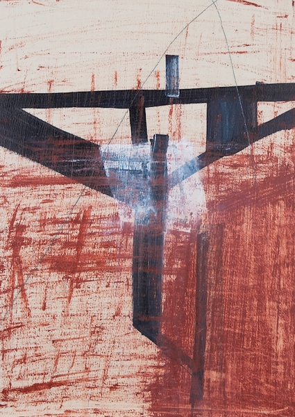 "This image tells you about a search for balance between the correct amount of color, direction, and thickness on the line. The image is overlaid several times until only the contour remains from previously painted still life."
