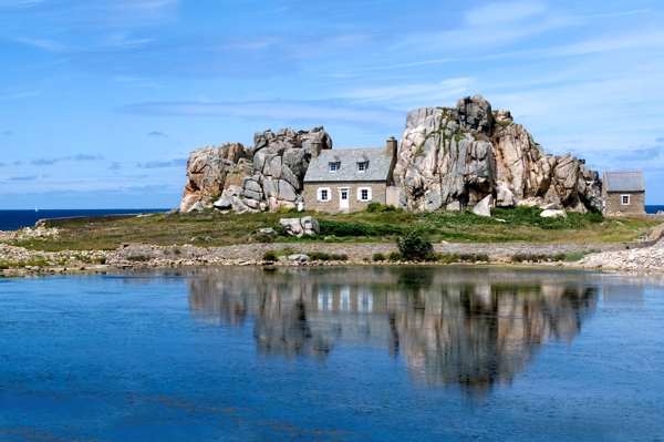 "House in Brittany. In the original a panorama photo with the highest resolution - Here a detail of the image - the famous house in Brittany (France) - directly at the sea. A landscape shot."